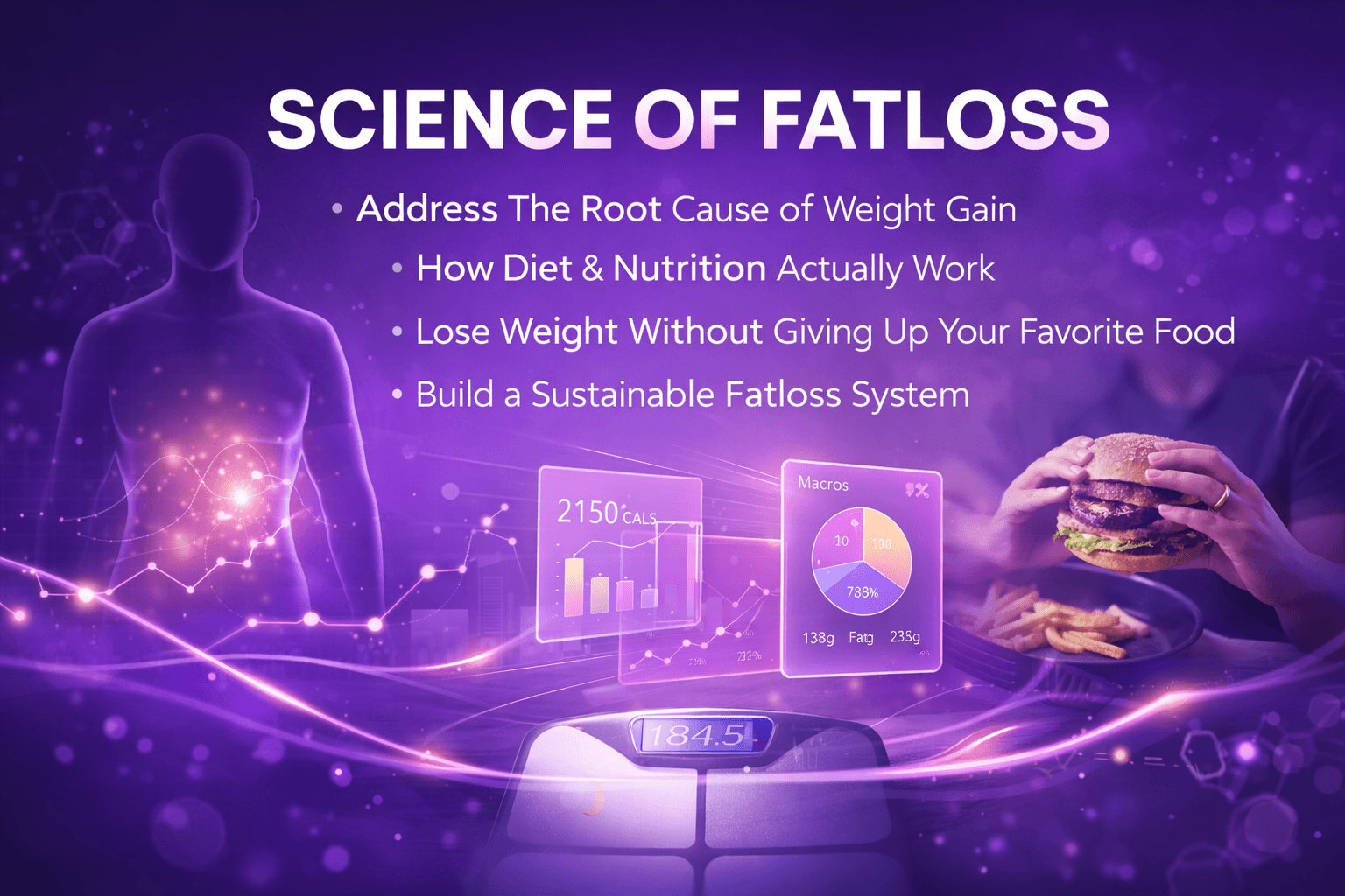 Discover the science behind fat loss in a powerful 3-hour live workshop. No crash diets. No starvation. No giving up your favorite foods.